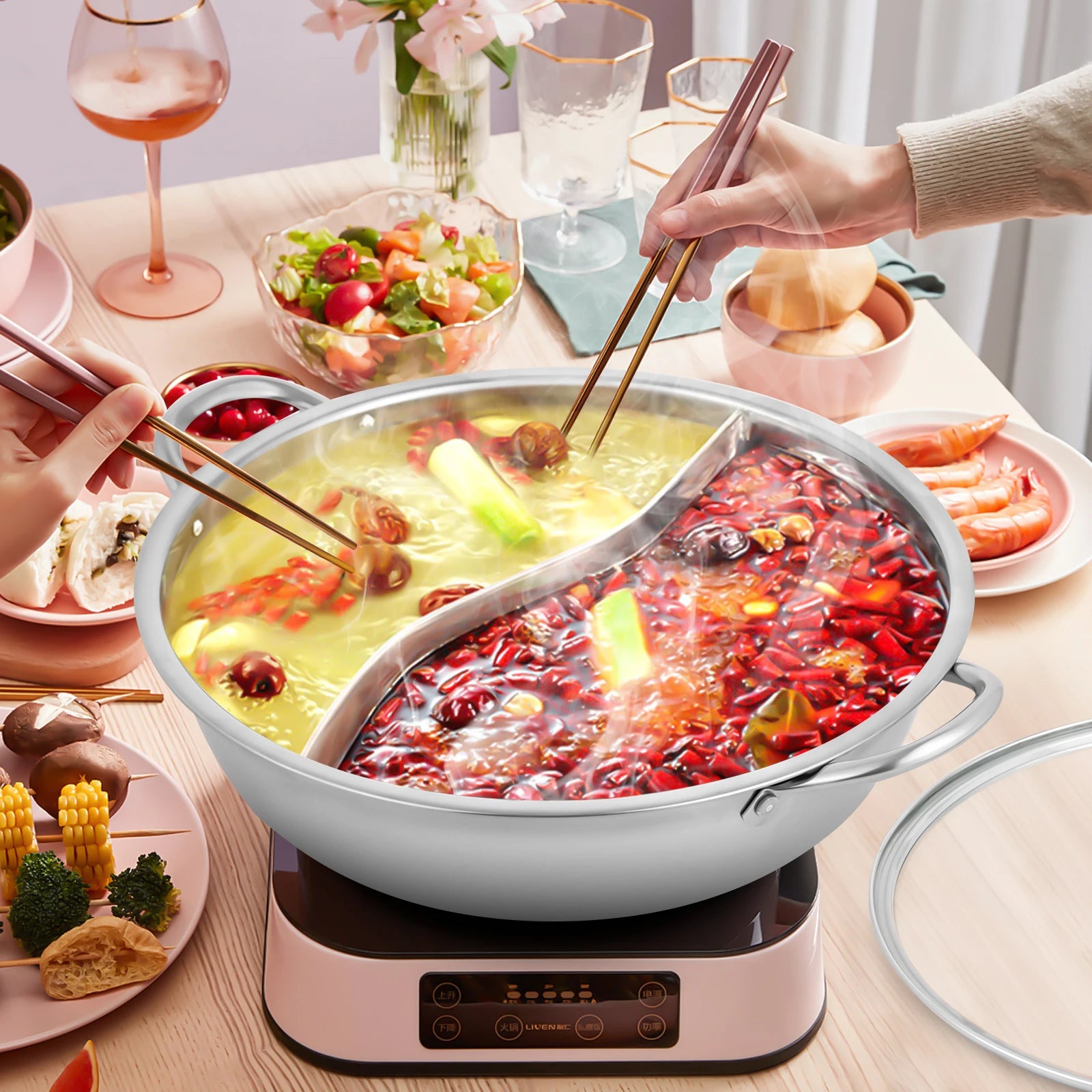 - Built-in divider lets you cook two dishes at once—simmer soup on one side while you braise, steam, or fry on the other, without cross-flavor transfer.