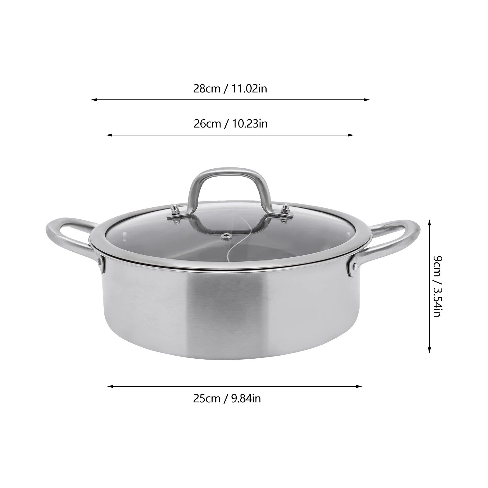 Stainless Steel Hot Pot Set With Divider And Glass Lid