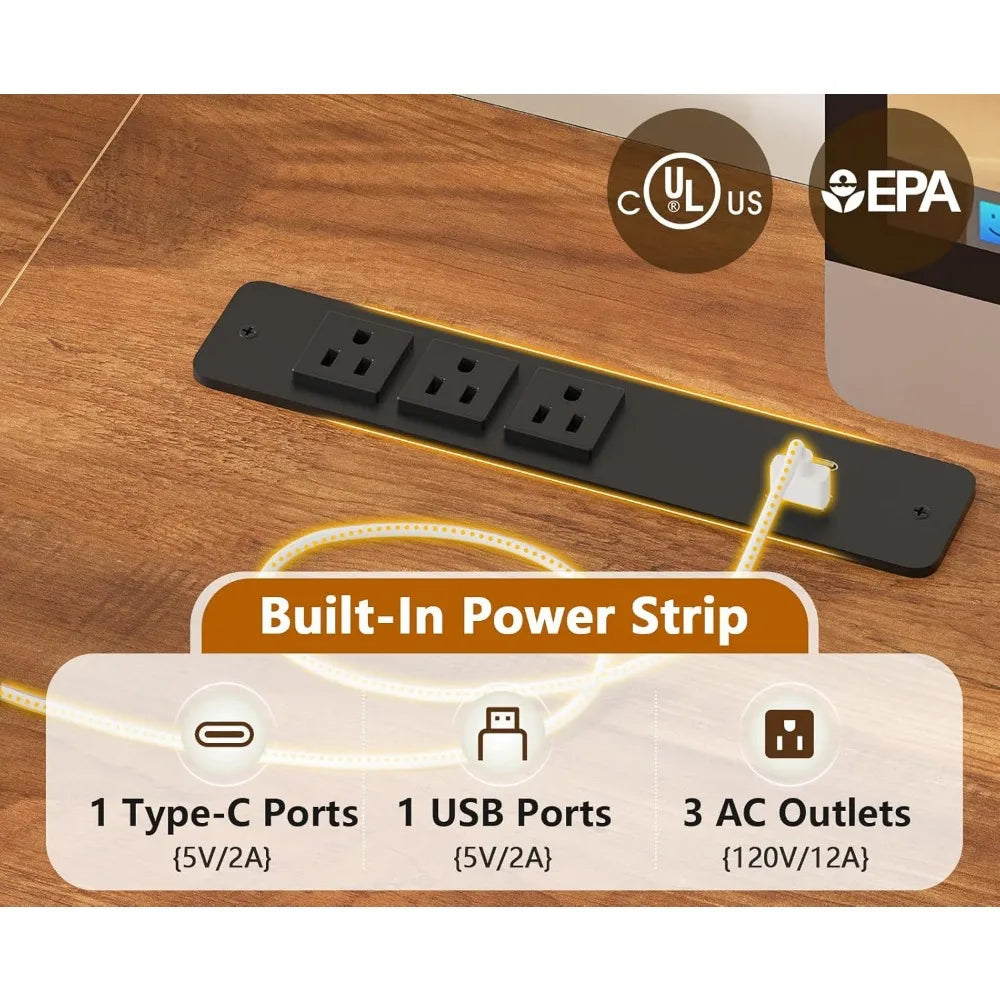 Zhuxiang I Shaped Desk With Outlets And Eight Drawers