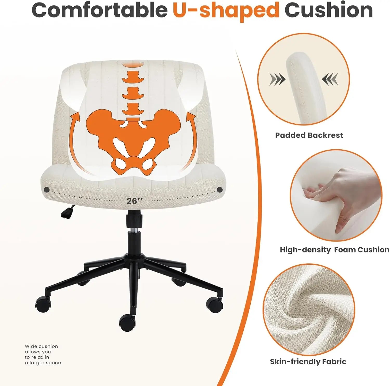 - Designed for long sessions, its wide cushioned seat and ergonomic curved back with high-density foam support you during long tasks—whether you're typing, reading, or applying makeup at a vanity.