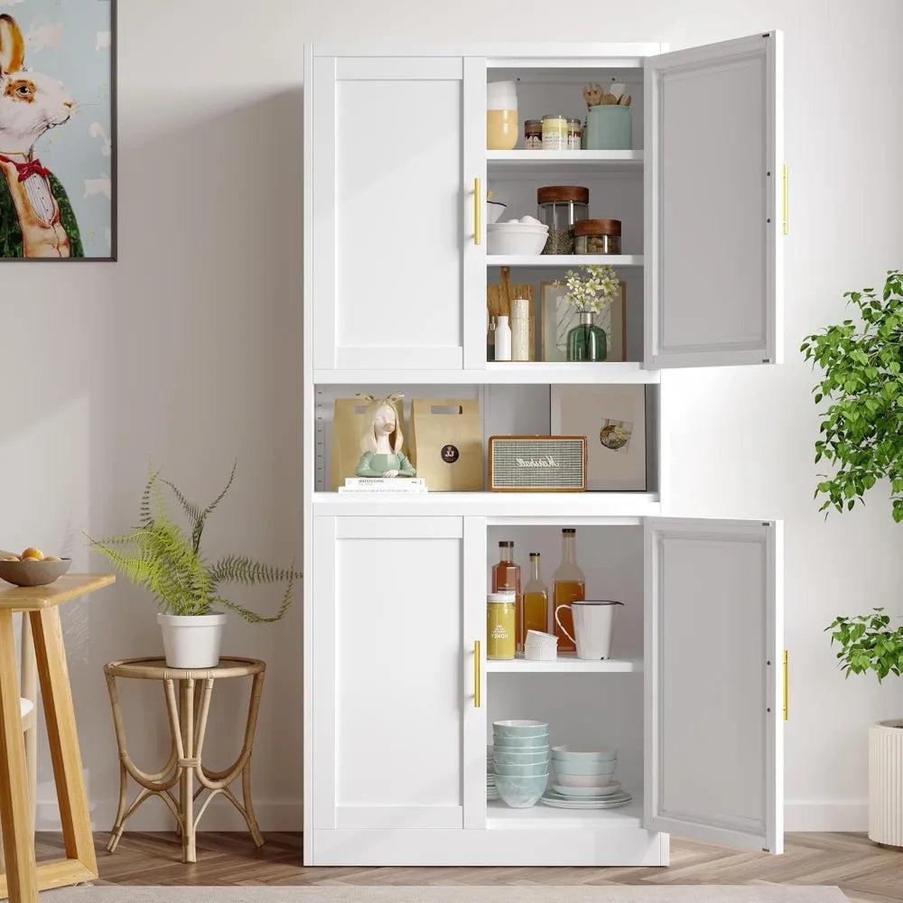 RBXC Metal Pantry Cabinet With 4 Doors And Adjustable Shelves Heavy Duty Steel Powder Coated For Humid Spaces